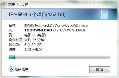 機器速度有點小卡,512M內存,1G的CPU(號稱1.5G,實際只有1G),比我的首派A60手機的256M內存和600MHz的CPU還慢,有點杯具;16G的內置存儲通過數據線拷貝數據也很杯具,基本在2M多一點每秒,拷電影時就是對耐心的考量了,以下4.3G的電影,實際上拷了近10分鐘。