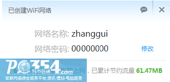 4. 這時,電腦就變成了一臺無線WIFI路由器了,可以讓連接的手機連網(這臺電腦已聯上網的話)、訪問電腦里共享的照片、電影及本文最重要的快速下載app 程序。