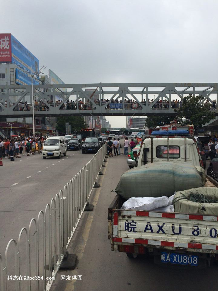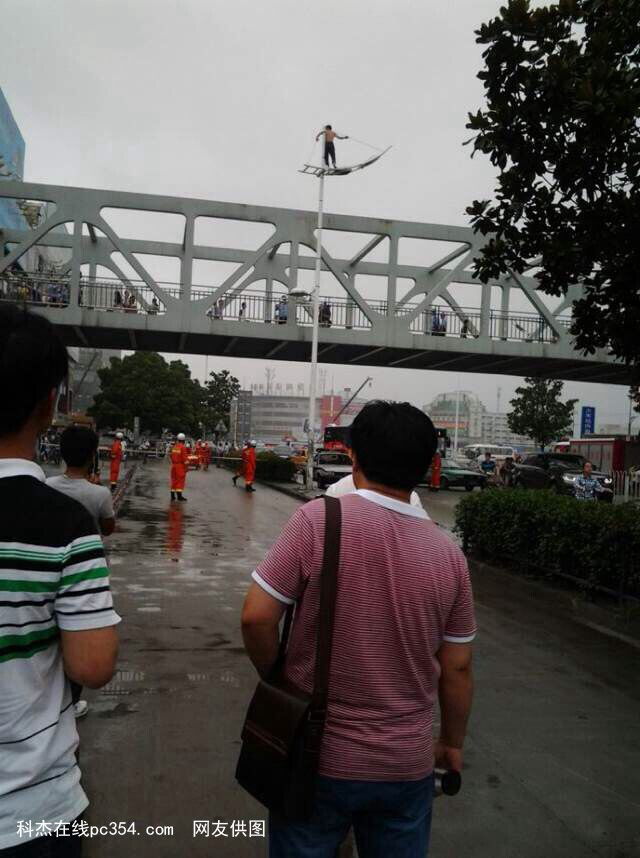 6月27日,位于合肥火車站與客運總站之間的人行天橋附近,一名男子從旁邊的路燈頂上一躍而下,瞬間斃命。據悉該男子為河南人,40歲左右,在與警方對持7小時后跳下死亡。