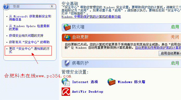 2.在出現的窗口左邊點擊“更改 安全中心 通知我的方式”