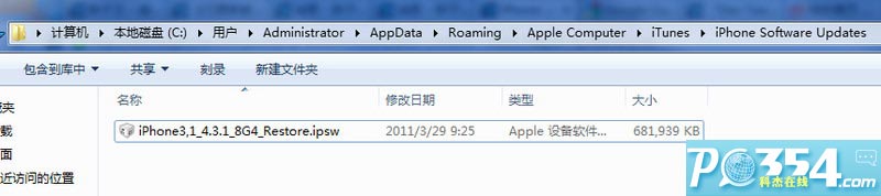 第一步:進入ITUNES更新4.3.1(如果已經更新過,進入如下目錄 C:Users\XXX\AppDataRoamingApple\ComputeriTunesiphone\Software Updates) 找到后綴名為IPSW 大小在600M左右的固件