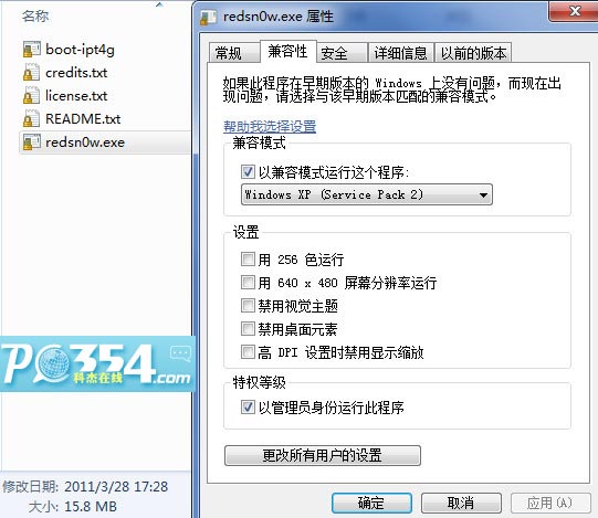 第三步:以管理員身份打開下載好的redsn0w.exe(windows7下 ,建議采用兼容XP模式打開)