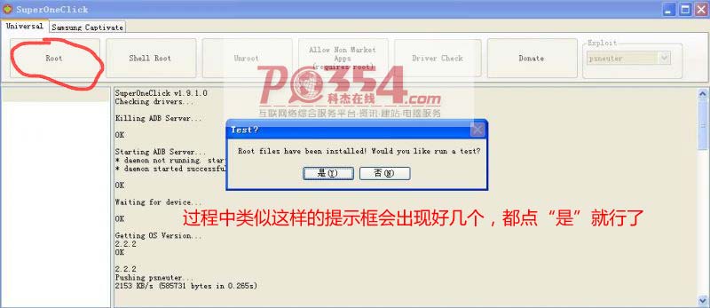 其實很簡單,打開程序后其它都不用點,只要點擊最左邊的 Root 按鈕等個幾十秒就行了,中間有對話框出現,一直點“是”就OK了。