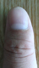 在指甲下方五分之一處,出現(xiàn)一條白色弧形的痕跡,這就是半月痕,也有人稱之為小太陽。