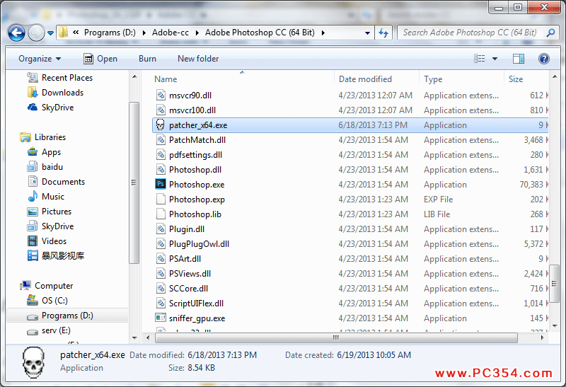 11、把下載得到的PSCCcrk解壓,得到兩個安裝文件把相應版本的patcher文件放到你的安裝目錄下