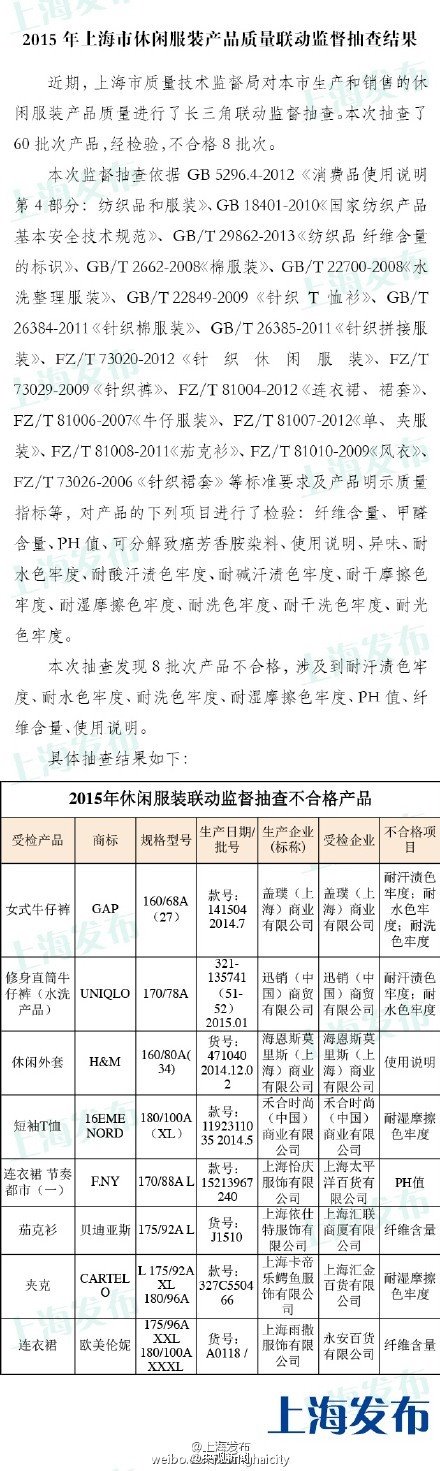 不過,這些便宜的洋品牌質(zhì)量真的有保證嗎?近日上海質(zhì)監(jiān)局抽查發(fā)現(xiàn),GAP女士牛仔褲GAP女式牛仔褲、UNIQLO修身直筒牛仔褲、H&M休閑外套、CARTELO夾克等不合格,不合格項涉耐汗?jié)n色牢度、耐水色牢度、PH值等。色牢度差服裝易褪色,且脫落的染料或通過皮膚吸收危害健康。